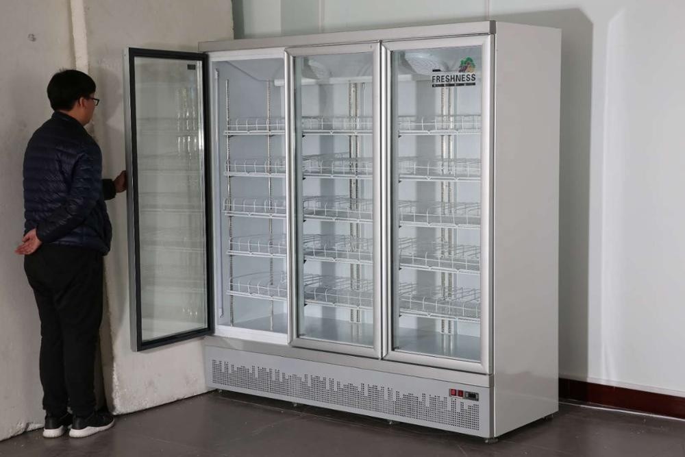 1. Le réfrigérateur en verre droit de porte est très utilisé pour des boissons d'affichage, des fruits, des légumes, la saucisse, la laiterie dans l'épicerie, le supermarché etc.