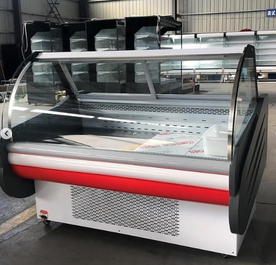 Congélateur en verre incurvé spécial d'affichage de viande de supermarché