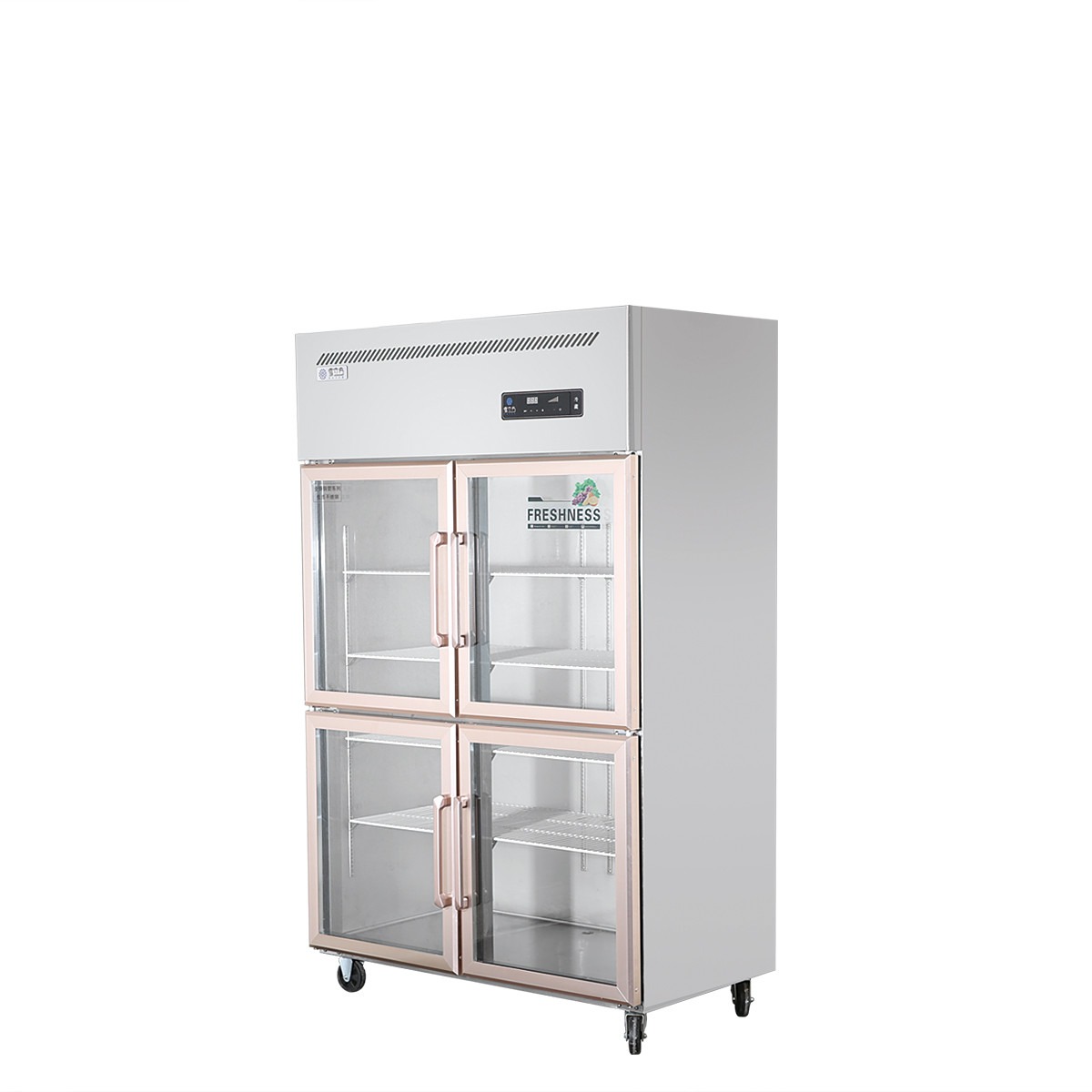 2. Le haut désembuage d'air chaud de configuration peut effectivement réduire le brouillard en verre dans la salle de réfrigération, et les matériaux de nourriture dans l'armoire sont clairement évidents